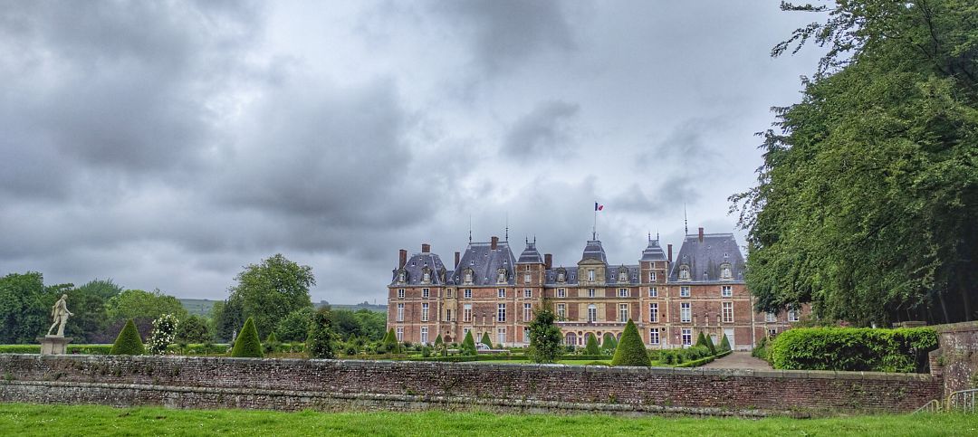 Ik had een camping uitgezocht in St. Valery-sur-Somme. Maar dat is op mijn middagstop nog maar 13 kilometer weg en ik heb het gevoel dat ik nog wel wat meer kan rijden. Dus even checken wat mijn opties zijn. Ik besluit te proberen naar Eu te komen. Ik heb onderweg nog een mogelijkheid in Saint-Blimont, maar dat spreekt me niet aan. Waar ik even geen rekening mee hield was een opstekende wind uit her zuid-westen! Die had ik dus heel veel tegen. Zelfs in een afdaling voelde ik hoe die me tegenhield. En mijn knie begint ook weer een klein beetje te zeuren. Maarja, ik had nu gekozen en moest dus door! Gelukkig komt daar Eu in zicht en is de camping Minicipal goed aangegeven. Aldaar aangekomen sta ik even uit te hijgen en krijg ik voor 5 euro 30 een plekje. Inclusief douche en inclusief wifi (tot 22u 🙂 )