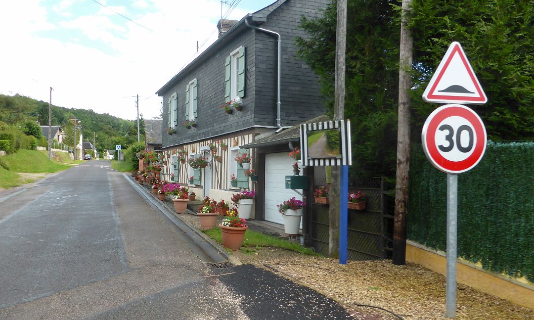 Gelukkig kom ik weer in de bewoonde wereld. Het laatste stuk glooit veel meer en de zon laat zich weer vaker zien. Ik fiets nu door het dal van de Risle, mijn einddoel vandaag is Brionne. Ik kom nog een paar mooie huizen tegen op dit laatste stuk en kan mijn camera nog eens pakken.