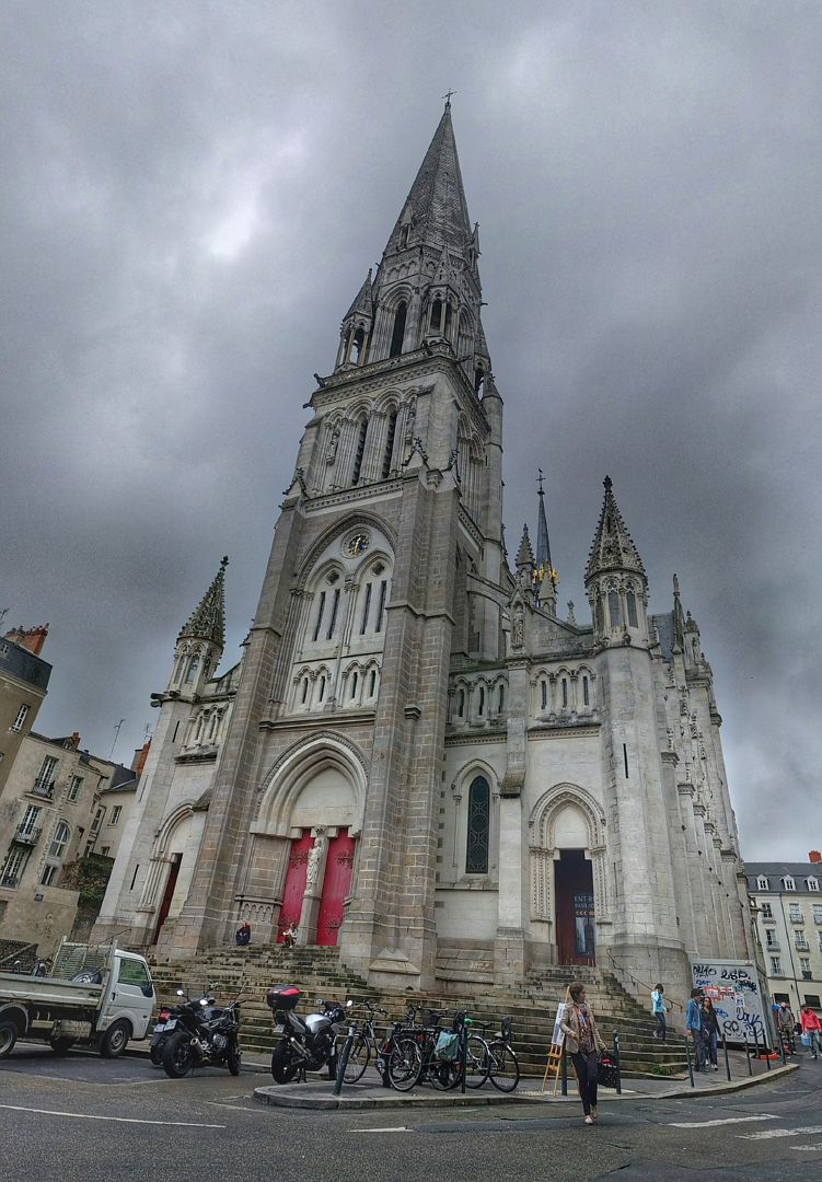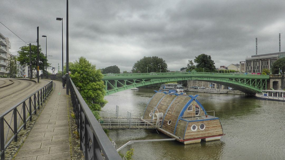 Daarna slingert de weg zich eerst via de oevers naar Nantes en daarna door Nantes heen. Maar ik ben meer bezig op het verkeer te letten dan op de omgeving. Ook al is er een fietspad dat midden door de stad loopt.