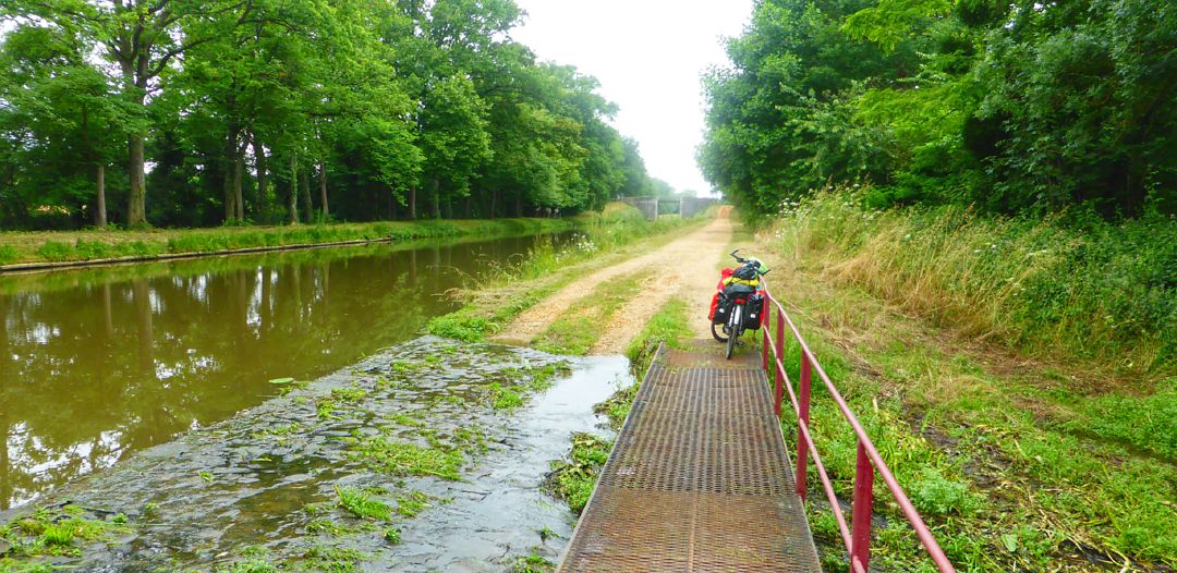 rij ik Nantes weer langzaam uit. Het gaat hier weer een beetje omhoog en naar beneden. Had ik moeten weten, maar dat had ik dus niet opgeslagen. Ik volg nu de Velodysee 1 route en die is wat meer ‘off-road’ dan wat ik tot nu toe gehad heb. Ik slinger nog wat door het binnenland en ineens is daar het kanaal tussen Nantes en Brest.