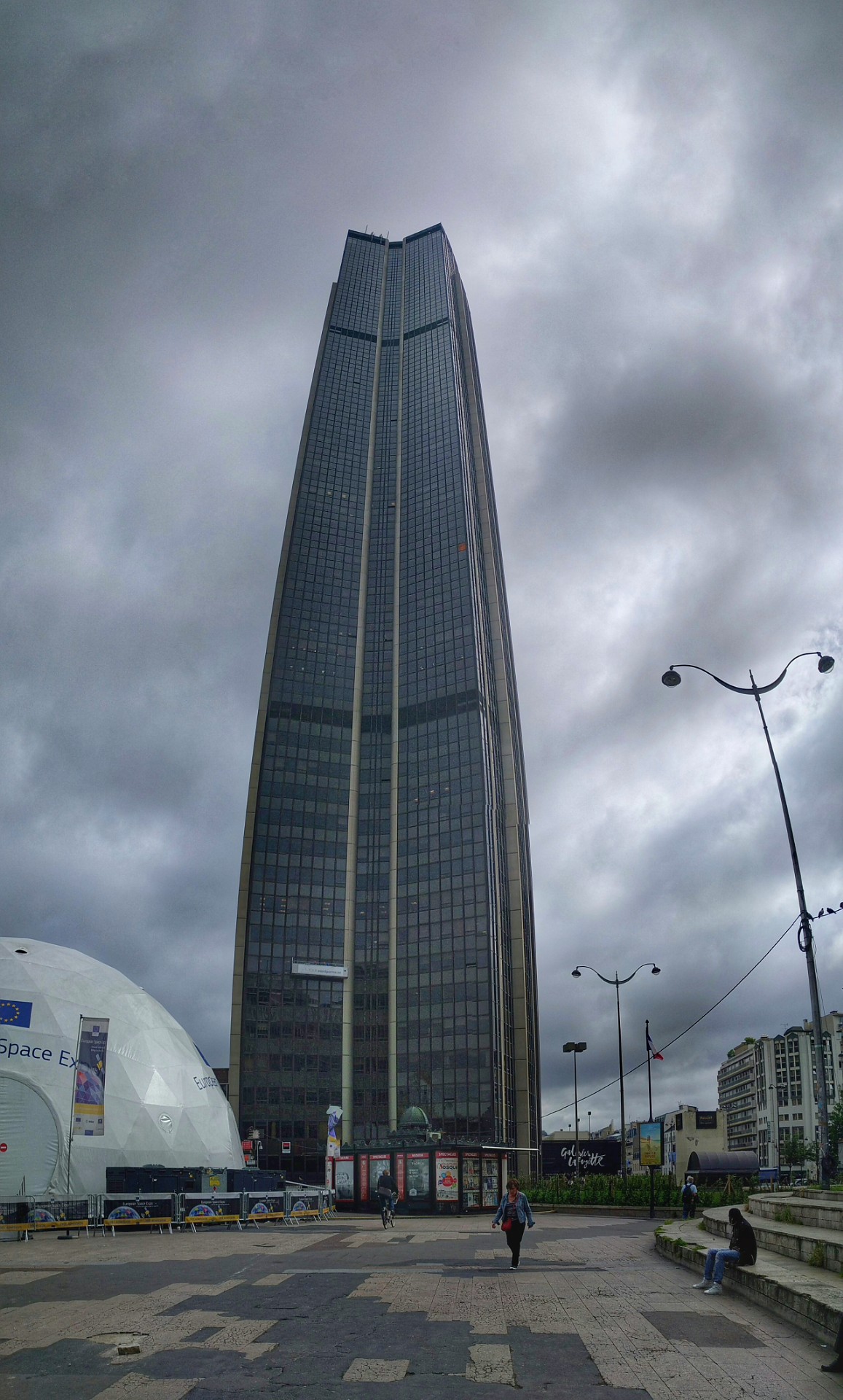Ik kom aan op Gare Montparnasse en moet 2,5u later weer vertrekken vanaf Gare du Nord. Tijd dus om wat van de stad te zien. Omdat het nog maar net 10u is, is het nog goed te doen. Even uitzoeken hoe het zit met waar ik mag of kan fietsen maar dat wijst zich wel. Op veel plekken mag je op de busbaan fietsen, maar er zijn ook fietsstroken her en der. Ik kan iedereen aanraden om Parijs per fiets te doen. Tegenover het station zit natuurlijk meteen de hoge Montparnasse toren.